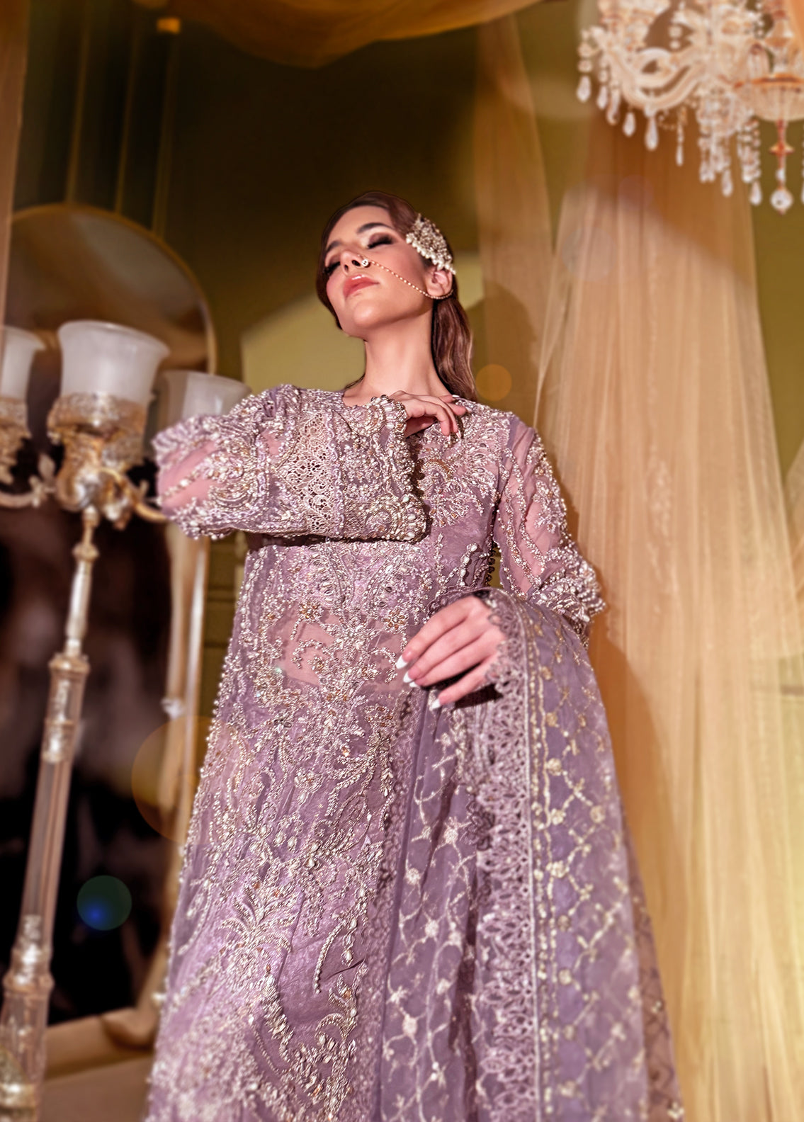 Sequins Embroidered Hand Embellished Sleeves on Organza