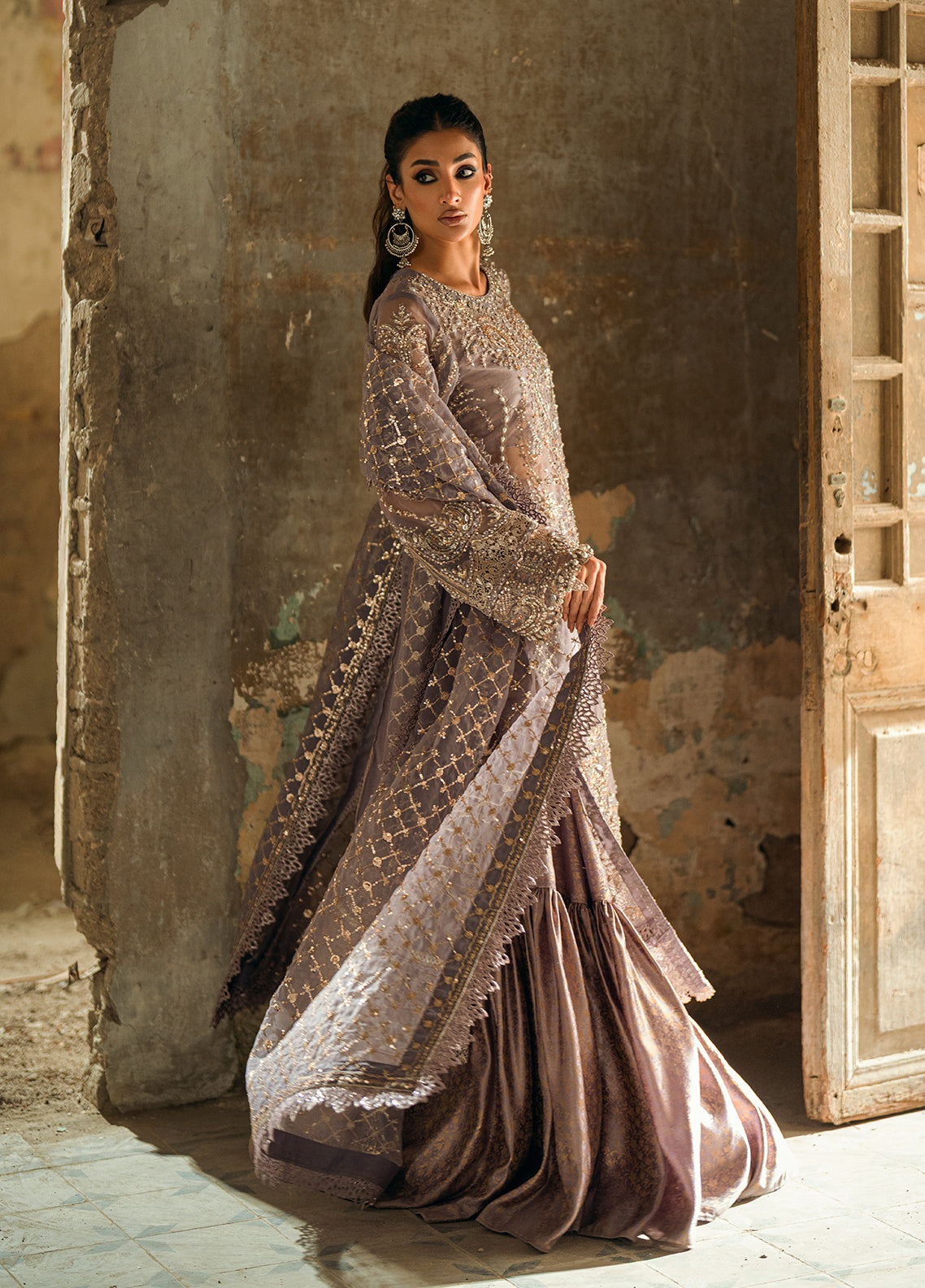 Sequins Embroidered Hand Embellished Front on Organza